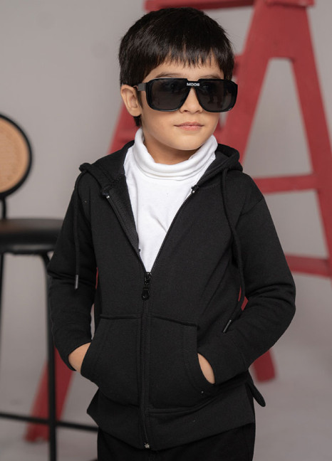 The ChillChamps Boys Black Zipper Hoodie combines warmth, comfort, and style. Made with lightweight fleece and a smooth front zipper, it keeps your little boy cozy during school, playdates, or weekend winter adventures.