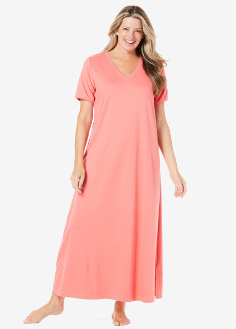 Prettify your lounge routine with this delightful sleep dress that's cute and comfy. A trapeze silhouette in a breezy cotton blend leaves plenty of room to move, and an open V-neck and short sleeves are relaxed and breathable while you sleep.